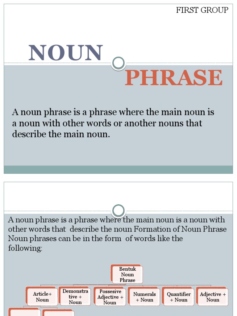 Complex Noun Phrases 1 Ieltstutors from www.ieltstutors.org A noun phrase, or nominal (phrase), is a phrase that has a noun (or indefinite pronoun) as its head or performs the same grammatical function as a noun. Noun phrases often function as verb subjects and objects, as predicative expressions and as the complements of prepositions.